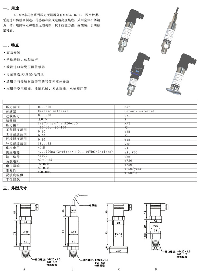 XL-802B小巧型壓阻式壓力變送器
